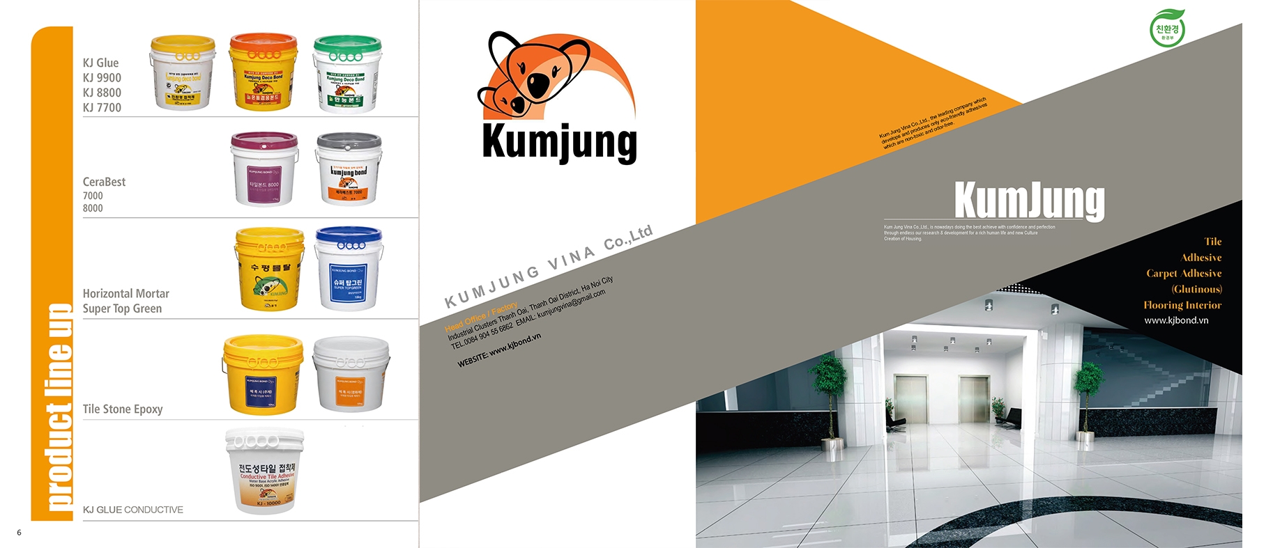 Trong công trường xây dựng, chúng tôi đã phát triển và chỉ sản xuất chất kết dính thân thiện với môi trường, không độc hại và không mùi, vì vậy chúng tôi đã nỗ lực để đảm bảo rằng không có sự bất tiện cho khách hàng.Do đặc điểm của các sản phẩm của chúng tôi, nó không có vẻ ngoài lộng lẫy, nhưng là một vật liệu xây dựng cơ bản, nó không thể phân biệt được từ bất cứ nơi nào trên thế giới, và nó được chú ý không chỉ ở Hàn Quốc/Việt Nam mà còn trên thế giới.THU GỌN